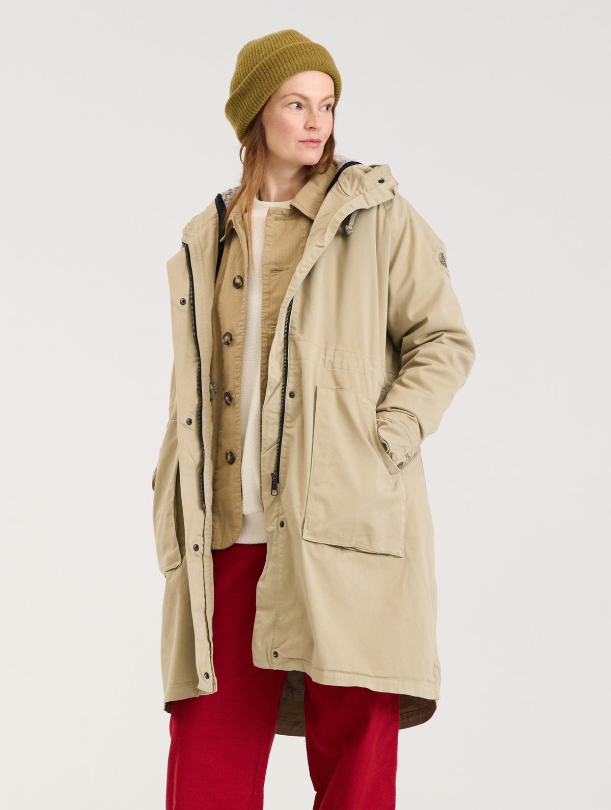 Naisten klassikkoparka sopii mainiosti useaan vuodenaikaan irrotettavan villasekoitteisen teddylämpövuorin ansiosta. Edessä vetoketju, tuulilista neppareilla sekä viistotut paikkataskut. Sisäpuolella vyötäröllä kiristysnyöri ja hihassa pyöreä R-Collection brodeeraus. Raglanhihat, joiden suissa nepparikiinnitys tampilla. Helma pitenee hiukan taakse.