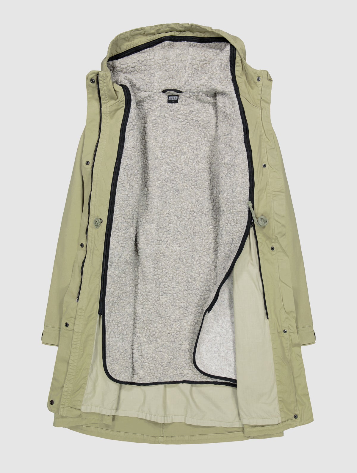 Kangas on valmistettu GOTS-sertifioidusta luomupuuvillasta ja se on käsitelty likaa ja vettä hylkiväksi. Käsittely säilyttää kankaan luonnollisen pehmeyden ja hengittävyyden, eikä se sisällä fluorikarbonaattiyhdisteitä, eli tuote on PFC-/PFAS-vapaa.. Tiiviin kudoksen ansiosta kangas pitää myös hyvin tuulta. Takissa on ohut polyesterivuori sekä irrotettava teddylämpövuori kätevällä vetoketjukiinnityksellä. Vuorin hihoissa on liukas pukemista helpottava topattu polyesterivuori.