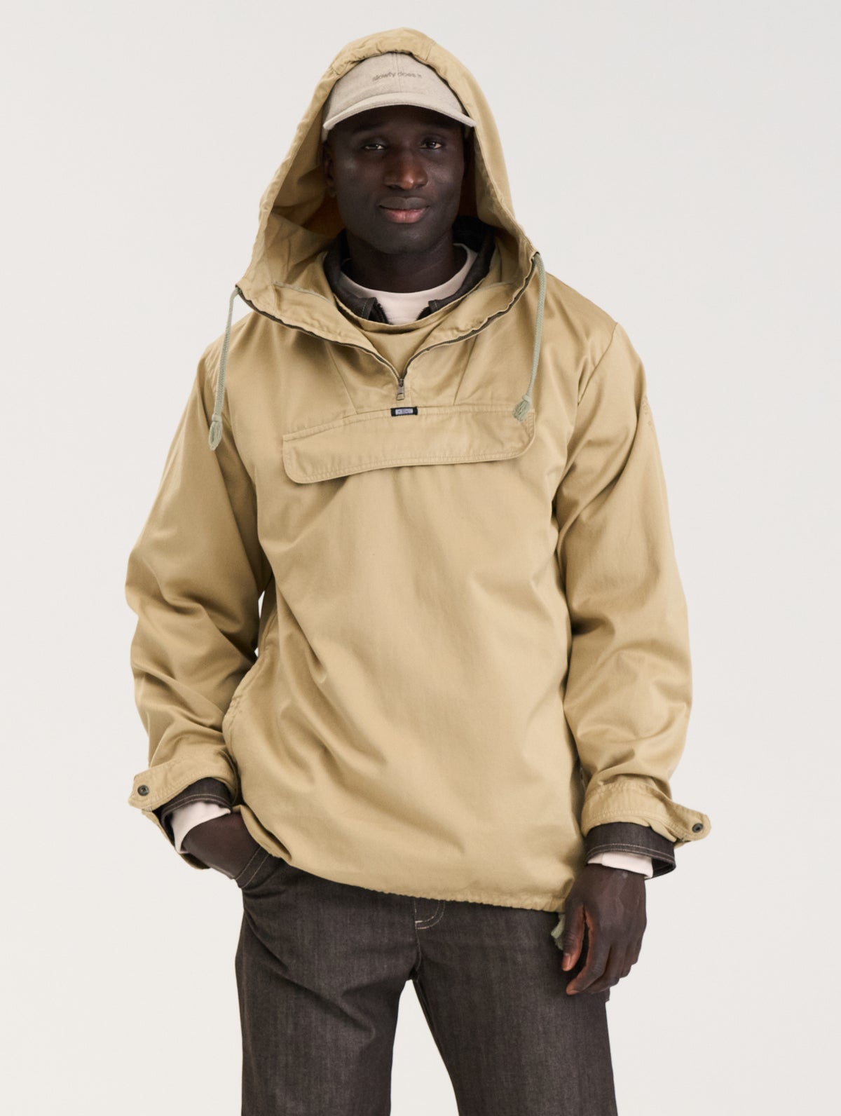Väljä unisex-mitoitus. Anorakin tilavassa hupussa sekä helmassa on puuvillaiset kiristysnyörit.