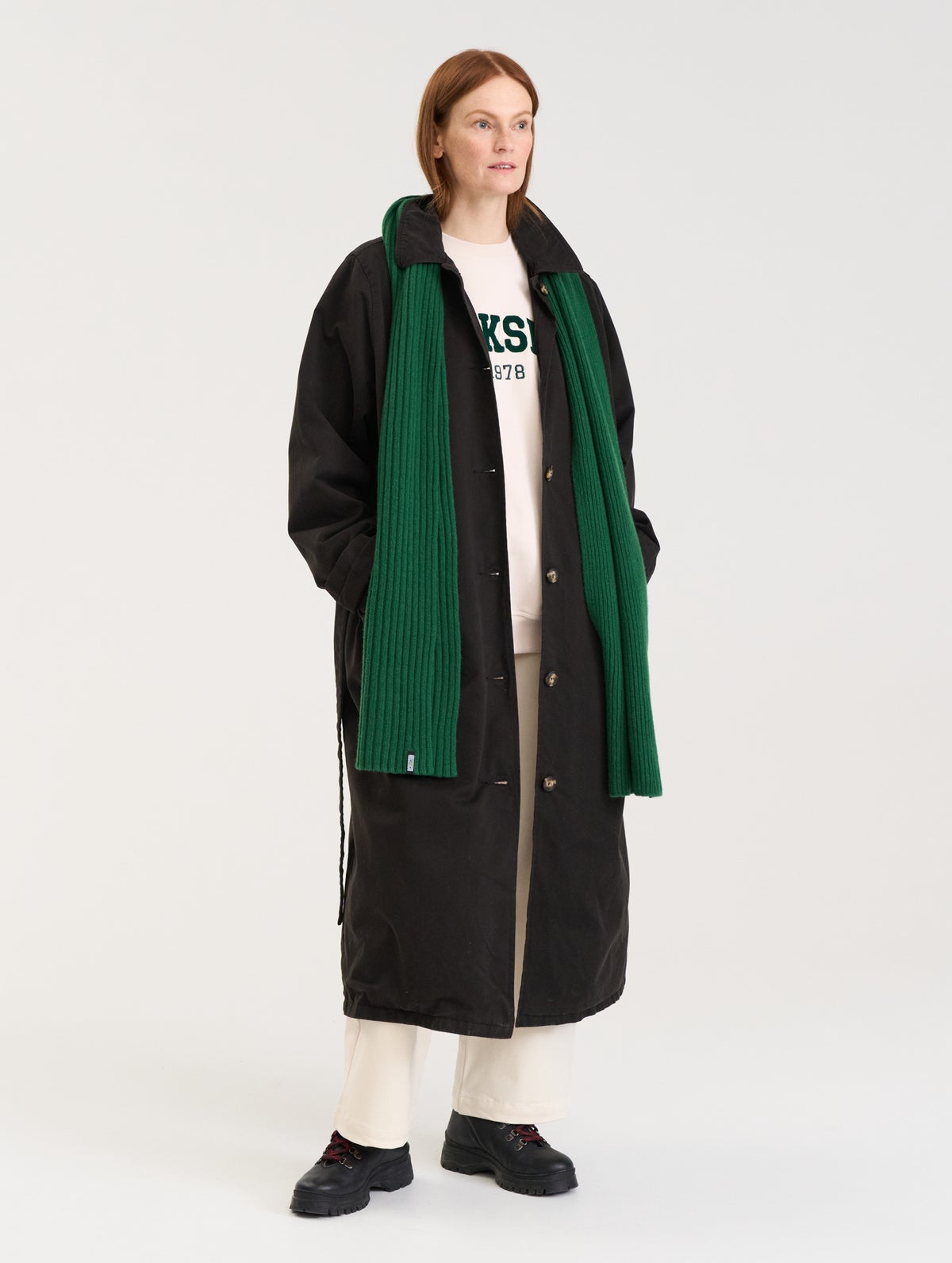 Suositun Tuulikki-trenssimme uudistettu puuvillakankainen versio. Väljä mitoitus ja kevyt vuori. Kaulukset, nappikiinnitys ja leveä solmittava irtovyö. Pitkät suorat hihat, hihansuissa kääntövara. Viistot taskut, selässä takakaarroke ja helmassa halkio. Niskassa brodeerattu puu-logo.