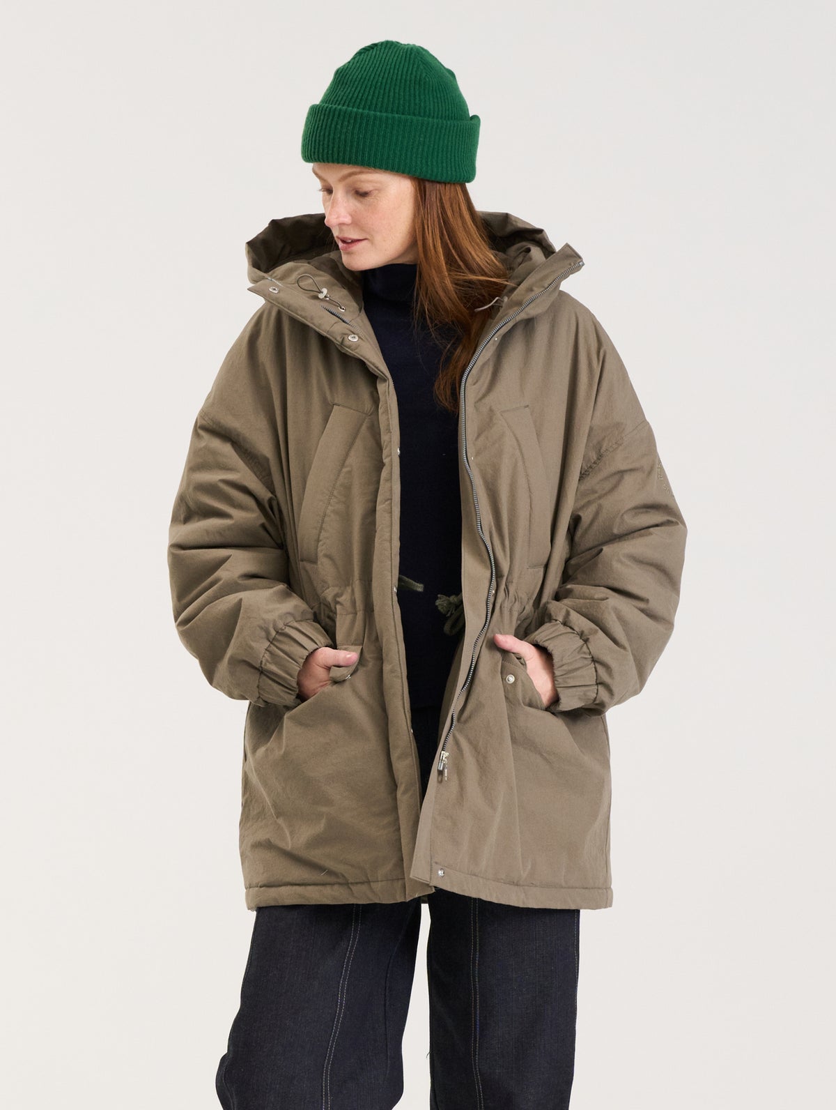 Saara on naisten muhkea vettähylkivä toppatakki. Vanullinen tikkivuori. Edessä vetoketju ja tuulilista piiloneppareilla. Edessä lepotaskut ja läppätaskut piiloneppareilla, takissa on myös vyötäröllä kiristysnyöri. Sisäpuolella vetoketjullinen povitasku. Hihan suussa kuminauhakiristys sekä vasemmassa hihassa pyöreä R-Collection-brodeeraus. Kangas on luomupuuvillaa.
