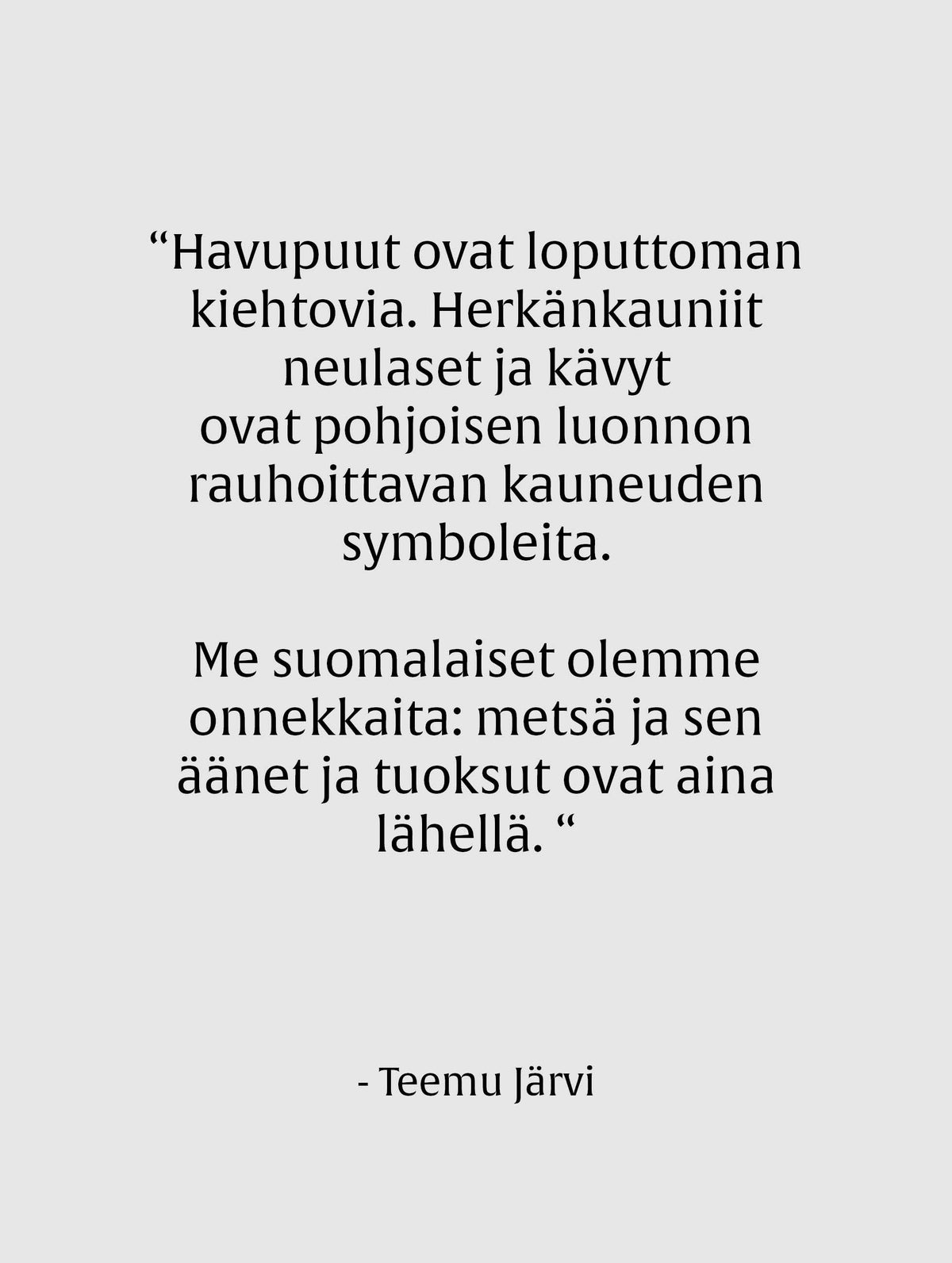 R-Collectionin suosittu Laura-T-paita Teemu Järven havut-brodeerauksella. Teemu Järvi on luontoaiheisiin erikoistunut taiteilija. Perinteisillä työskentelytavoilla kuten ruokokynällä syntyy tuotteita, jotka rakentavat sillan kiireisestä urbaanista arjesta ikiaikaiseen, rauhoittavaan luontoon.